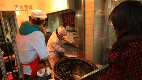 2009年初的小杨生煎还没有形成现在的连锁品牌,只不过是把当年开在吴江路东段的小生煎摊变成了上下两层的门面店,而且还在刚刚完成改造的吴江路西段上开了一家分店。每天午后,它家店门口就会一直排着这样长长的队伍。即使寒风凛冽,但顾客们依旧热情不减,想的就是能在第一时间品尝到新鲜出锅的小杨生煎!