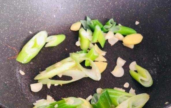 5. 然后我们需要另外起锅在里边加入适量的食用油,把我们已经这么好的大蒜,生姜大葱放入到锅里边翻炒出香味。