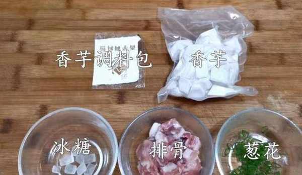 需要准备的食材有:糯米香芋、排骨、冰糖、葱花