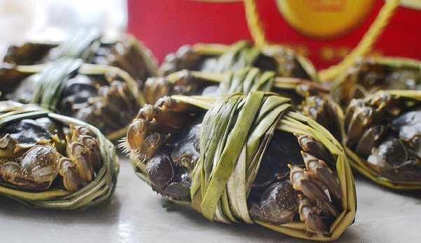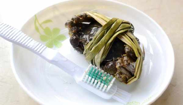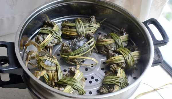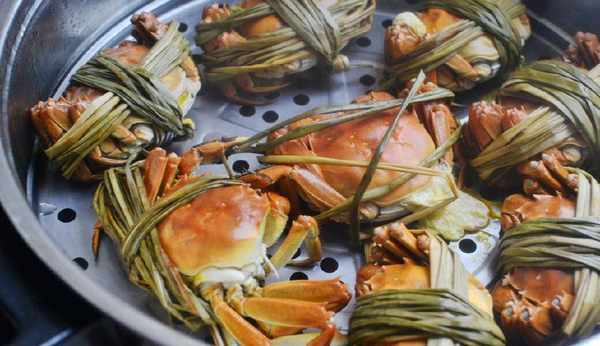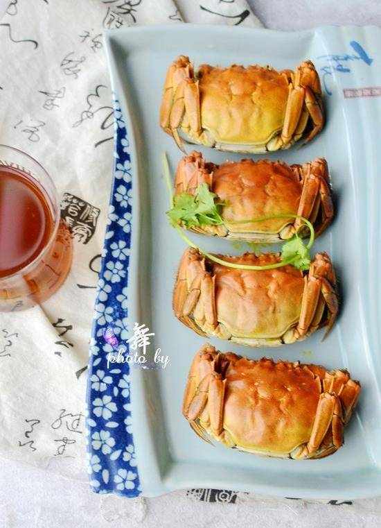材料:大闸蟹8只 辅料:紫苏叶一小包
