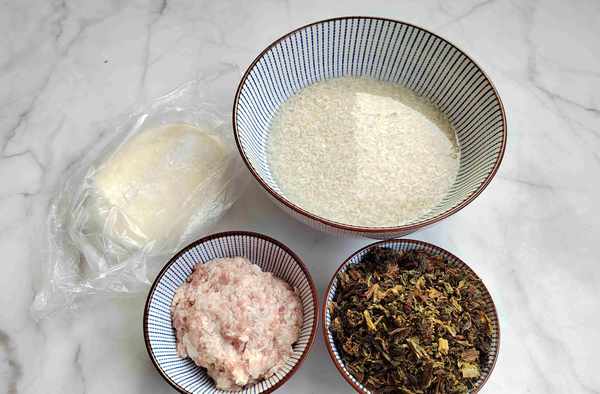主料:梅干菜60克;肉末160克;糯米260克;大米60克;烧麦皮260克。