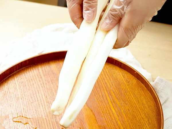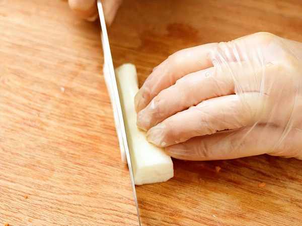 1、先给山药去皮,记得戴好手套防止过敏哦。