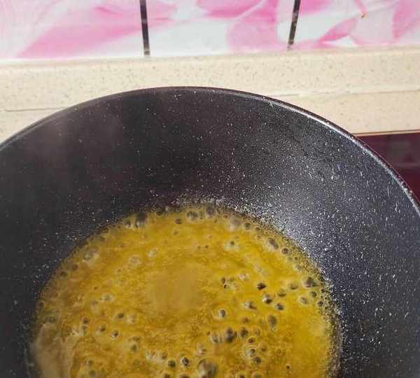 第12步、锅中倒入橘子汁,白糖、加入适量淀粉水不停搅拌至烧开逐渐粘稠、呈透明状关火。