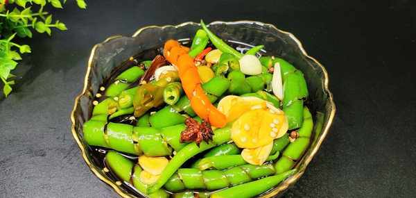 4、准备一个密封罐放入腌制好的辣椒,最后倒入腌料,料汁与辣椒持平,拧上盖子放入冰箱冷藏,腌制12个小时就可以吃了,吃起来非常的爽。