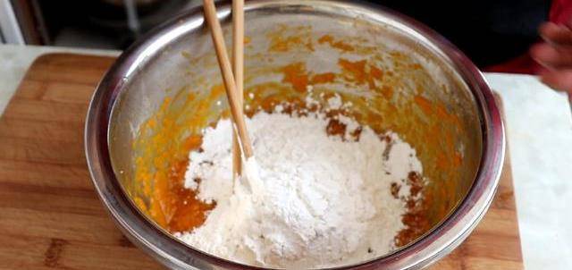 然后加入糯米粉,分多次加入糯米粉进去搅匀