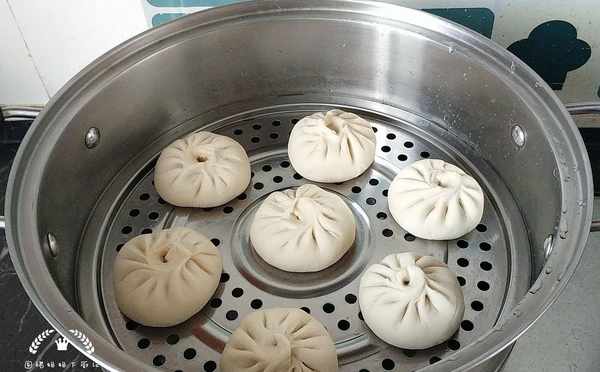 5、醒好的包子依次摆入蒸锅,注意一定是要凉水或温水上锅,水开后大火蒸15-20分钟即可关火;在蒸的过程中,要保证蒸锅不漏气,锅盖上面可以压一个重物,这也是蒸包子不被烫皮的重要一点。