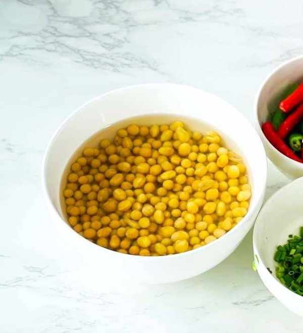 1 干黄豆浸泡时不要撒盐,放入高压锅后再撒盐,这是为了让黄豆更好吸水与入味。