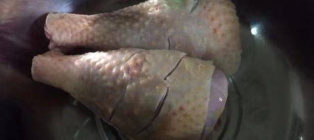 1.这个鸡腿是我妈妈自己养的,所以就不焯水了,洗干净打上花刀直接腌制。