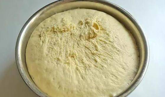1、酵母粉加温水调均匀,一点一点的倒进面粉里,把面揉成光滑的面团后放在盆子里发酵。