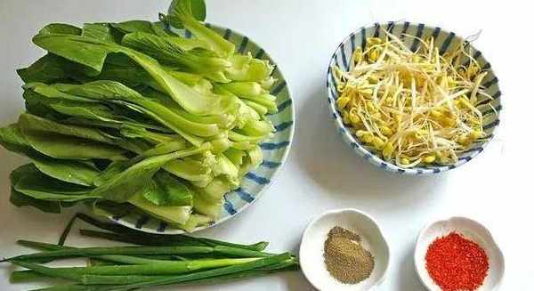 材料:面粉2斤、黄豆芽440g、上海青500g、葱4颗、胡椒粉、辣椒粉(可以要可以不要)、盐、酱油、鸡精、油、酵母粉8g