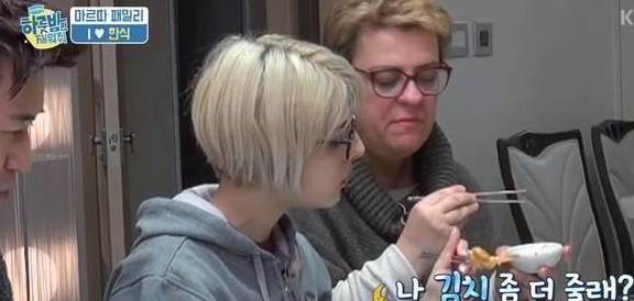 只是没有让人想到的是,不仅是韩国人喜欢吃泡菜,就连意大利人都这么喜欢吃泡菜,一家意大利的客人来到韩国的明星家里做客,韩国人自然要拿出他们认为最好吃的东西出来招待老外了,还给他们做了符合他们口味的西餐,香肠披萨等等,当然还有顿顿落不下的泡菜。
