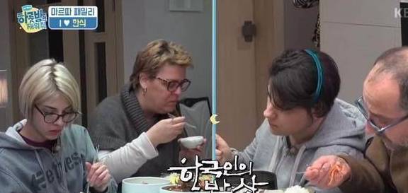 这一家意大利人吃韩国食物真的是吃的很香,不知道的还以为他们是从小就在韩国长大的呢,韩国的泡菜真的是很对他们的胃口,他们一家人用起筷子来也是很六,后来韩国人看到他们那么喜欢吃泡菜,就把家里的泡菜都送给意大利一家人了。