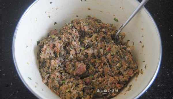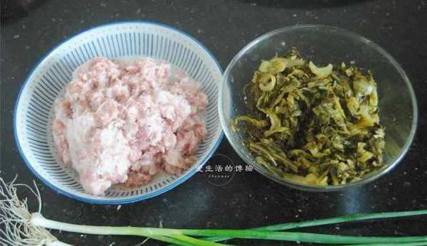 1,准备好食材,酸菜我买的芥菜做的,叶子很多,吃起来口感更加细嫩,猪肉馅要买那种搅打的又颗粒感的口感更佳。