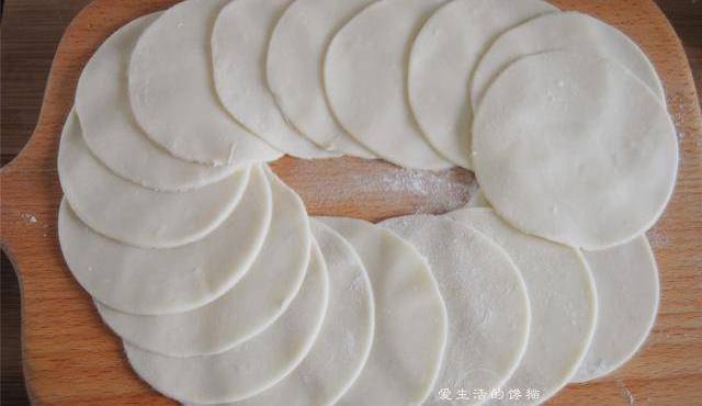 5,用擀面杖将其擀成厚薄一样的饺子皮,可以用圆形模具切割,会更加好看。