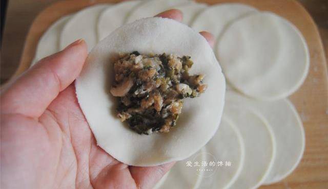 6,取一个饺子皮,报上适量的馅。