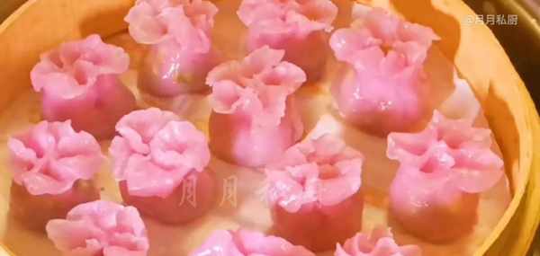 10.时间到揭开盖子,看一下非常的漂亮,外形像朵朵盛开的樱花,皮也是特别的薄,能清楚地看到里面的馅料,个个晶莹剔透,吃美食的同时,还能赏月亮。
