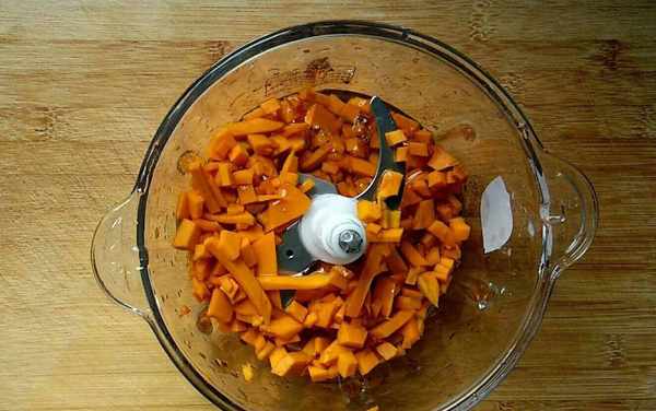 2、将南瓜用料理机打成南瓜汁,倒入大碗里。
