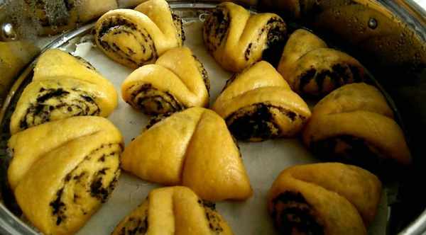 12、中火蒸20分钟,关火,5分钟后掀开锅盖,漂亮的南瓜黑芝麻花卷就可出锅了。