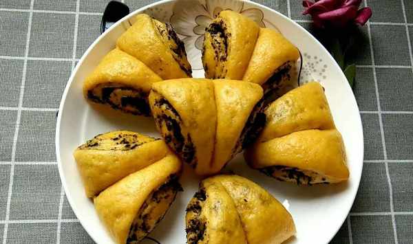 试试看,南瓜不用蒸,简单又省事。松软香甜的南瓜黑芝麻花卷,一定会让你食欲大振。
