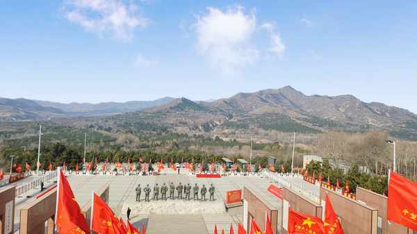 一段历史,血火铸就。一种精神,薪火相传。3月19日,上午9点我们一行8人驱车来到了平型关纪念馆。路上连峰欲翠,和风暖阳,汽车行驶在蜿蜒曲折的柏油路上,首先来到的是乔沟,乔沟险,沟壑纵横,山谷幽深,乔沟是平型关大捷主战场,如今建有广场,边上有描绘平型关大捷战斗场面的浮雕墙。