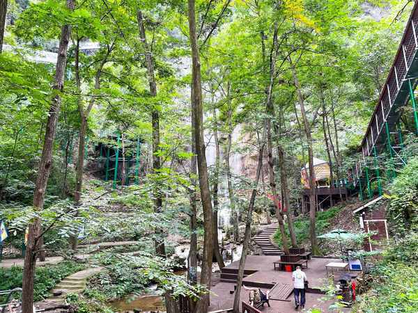 到王府竹海,一定不能错过天空之境,这个景点美得令人怀疑人生。虽然经过了三个小时的车程,但仍然感到充满新鲜感。夜晚住在景区木屋别墅中,仰望黑夜中闪耀的星星,感觉美极了。