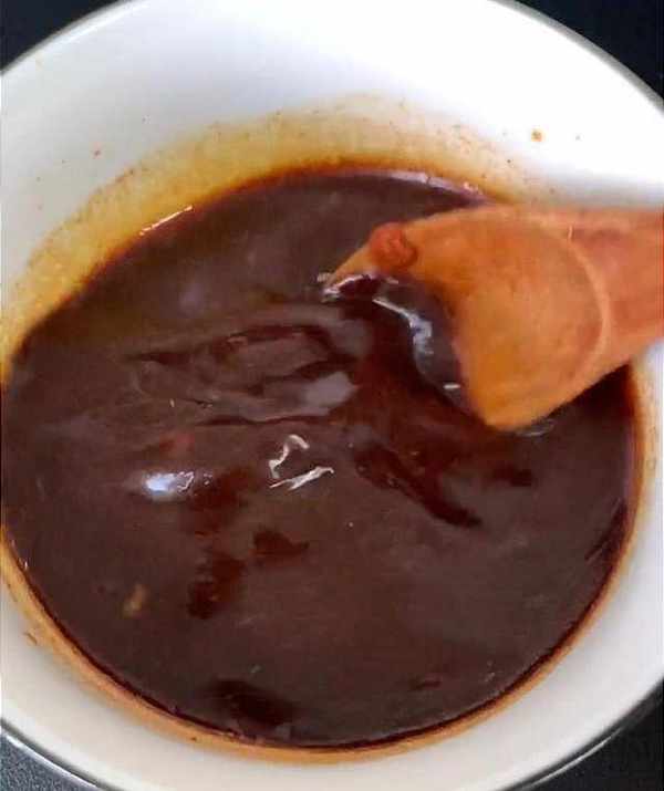 接着,调料汁:碗中放入生抽、蚝油、豆腐乳汁、老抽、盐、鸡精、十三香、一勺煮五花肉的肉汤,搅拌均匀,备用。