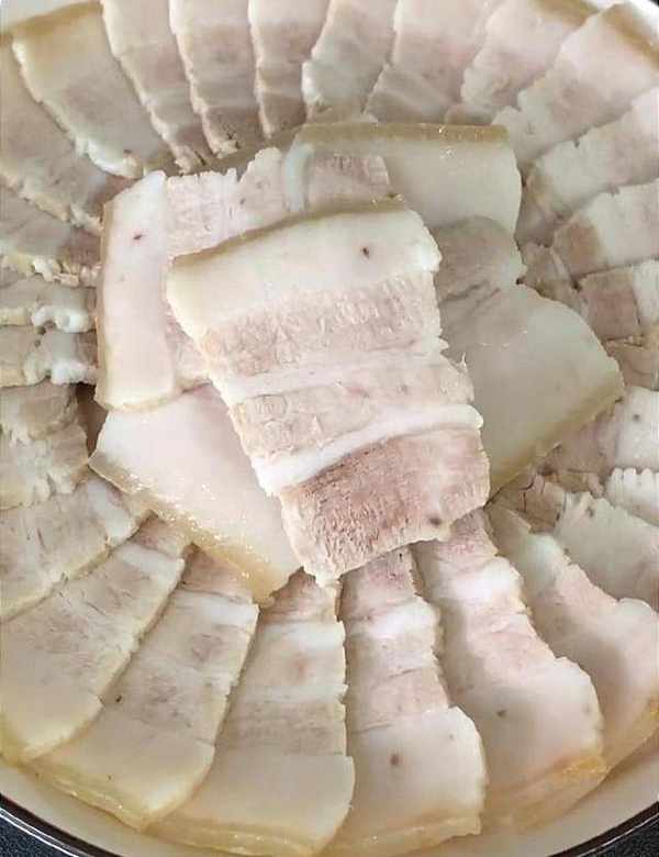 其实这个蒸肉,蒸的时间越长越好吃,越不腻。五花肉蒸熟以后,取出即可食用。