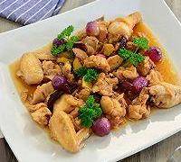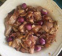 三黄鸡1只、红葱头12个、姜片3片、红枣去核1个、生抽15ml、料酒10ml、老抽5ml、蚝油5ml、蜂蜜5ml、鱼露10ml、盐3g、淀粉少许、鸡精少许