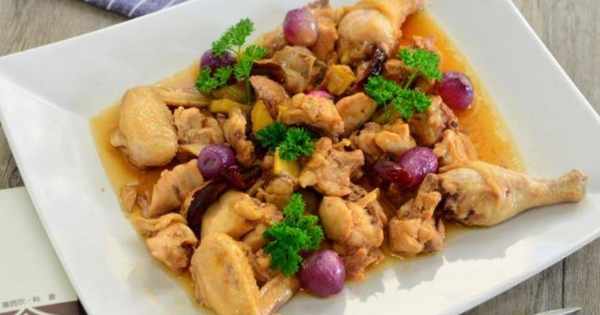放入余下的八个红葱头和红枣去核切丝放在鸡上。