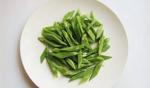 将豆角斜切小段备用