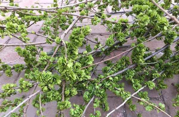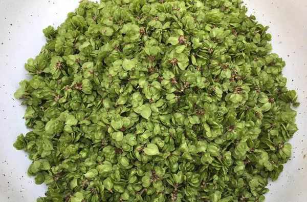 2、捋下来的榆钱会带小的榆树枝和灰色榆钱花蒂,这些都不能吃,要收拾干净;