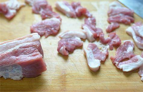 1.新鲜的五花肉清洗干净,沥干水分后,切成大薄片。切不好的或觉得新鲜肉不好切的朋友,可以将五花肉提前1小时放入冰箱中冷冻一下再切,就十分好切了,切好的肉片放入碗中备用。