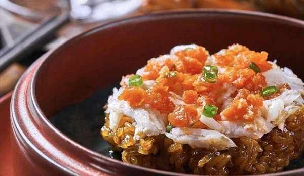 红膏蟹500克、炒好的糯米300克、糯米250克、香菇20克、鱿鱼干10克、五花肉50克、葱花5克、葱酥10克、盐3克、白糖2克、酱油5克、五香粉2克