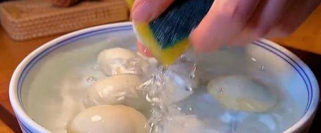 准备六个鸡蛋,给它放到一个大碗中,想要蒸出来的水蒸蛋更好吃,在选择鸡蛋的上面,就要选择这一种比较新鲜的鸡蛋,把鸡蛋给它放到大碗的里面以后,再加入一勺白颜色的食盐,然后再加入没过鸡蛋的清水,用食盐水把鸡蛋给它浸泡一下,浸泡个五分钟左右,五分钟以后我们再准备个海绵,慢慢的把鸡蛋给它搓洗一下,新鲜的鸡蛋上面难免有鸡粪,还有一些大肠杆菌,我要把鸡蛋给它清洗下,这样一会儿再打的时候就不会掉落在我们的鸡蛋液里面了。
