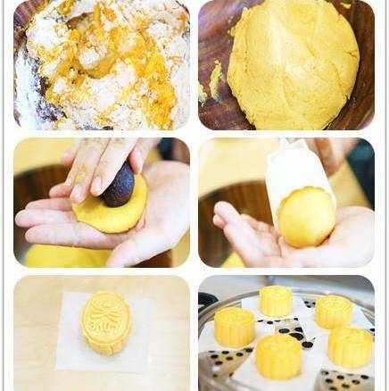 11.把月饼放在油纸上按压塑形,然后将做好的月饼,上锅蒸15分钟就可以出锅啦!你可以放凉后吃,也可以吃刚出锅的。