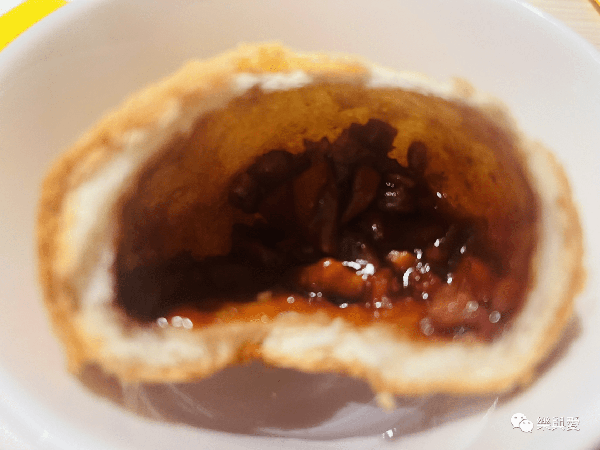 看似简单的一块马拉糕,耐心等待后,会形成三层气泡,上层大气泡,中层小气泡,下层直的,让服务员现场剪成四小块,哗,马拉糕在跳舞。