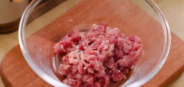 1.先将香菇放入热水中浸泡,再将其剁碎。