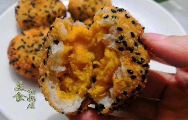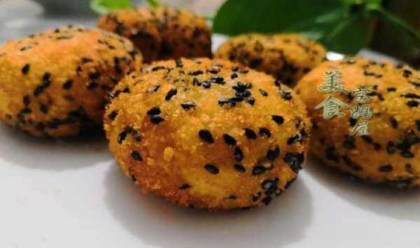 【准备食材】1根山药,1个红薯,1个鸡蛋,适量白糖,少许淀粉、面包糠和黑芝麻
