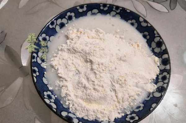 3、盆中加入少许面包糠和黑芝麻,接着把面包和黑芝麻混合均匀,接着把榨好的山药泥倒入盘中,加入适量淀粉,搅拌均匀,下手揉搓成中度软硬的面团。