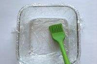 15.容器内铺垫上耐高温的保鲜膜,并在上面刷一层食用油
