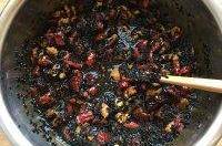 14.蒸至30分钟时取出,放入枸杞、核桃仁、红枣、黑芝麻充分搅拌均匀,之后再次入锅蒸制10分钟(让食材更加融合,同时也起到灭菌的作用)即可