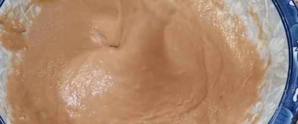 【步骤三】面糊装入容器中后,在容器一半的位置,现在将它饧发至自己的两倍大,也就是饧发好后会填满容器。