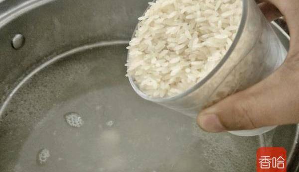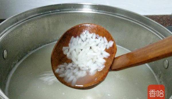 4.把米放进去煮开关小火,煮的时候记得要用勺子底部翻动防止蘸锅