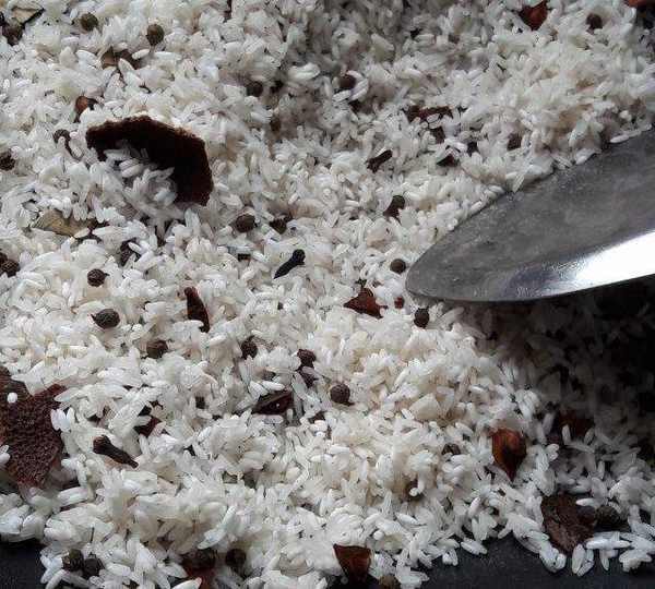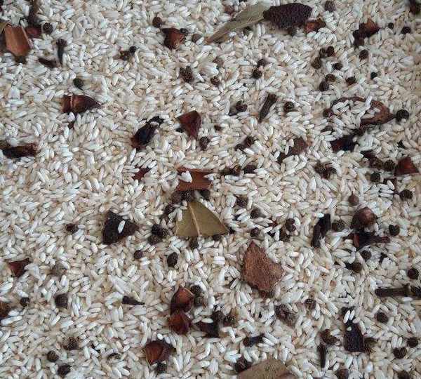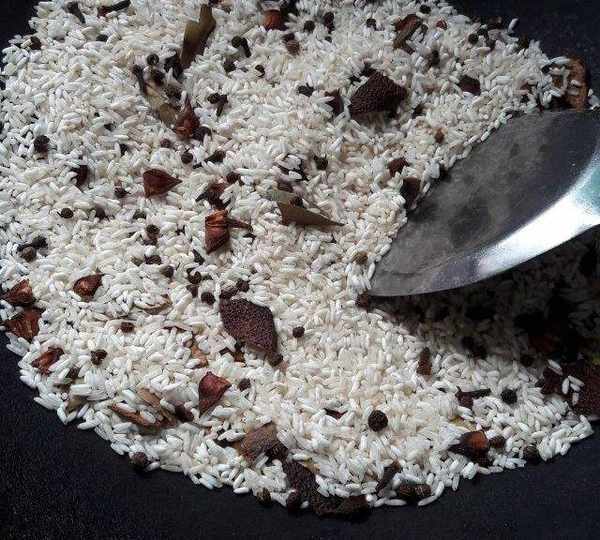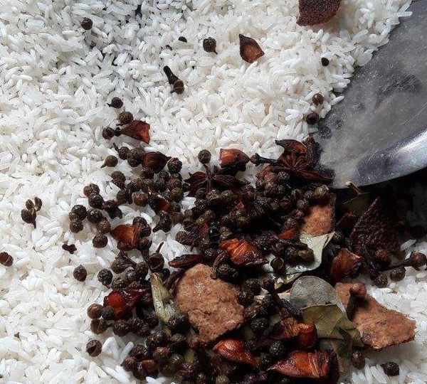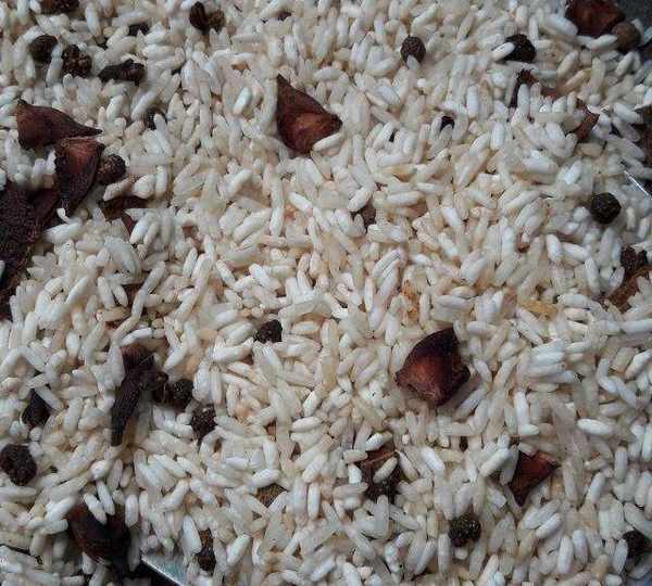 第11步、把八角桂皮香叶等挑出来,因为要是和米一起打碎的话,碎的程度会不一致,特别是香叶轻飘飘的,一打人家往上飞了。我不会告诉你炒的时候我开着窗,香叶被风吹走七七八八了