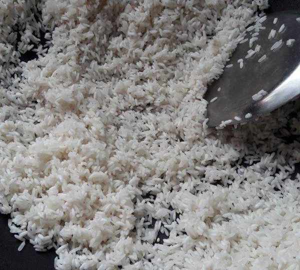 第5步、炒的时候记得每一次翻都要铲到底,到锅底,免得有米呆下面不动,烧糊了熟了,翻的频率保持一秒一次吧,刚开始会发现米粘连,所以刚开始用中火,快点炒散。