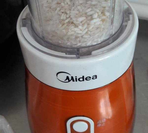 第12步、我的历史悠久的搅拌机,倒入研磨杯打成粉。