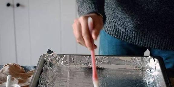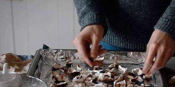 3.烤盘上抹油,放上撕好的蘑菇