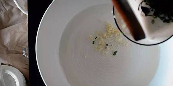 4.锅中热油,炒香蒜末,倒入鱿鱼