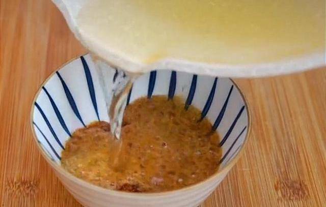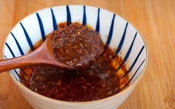 接着,调油酥:碗中加入两勺烧烤料,淋上烧好的热油,激发出香味,用筷子搅拌均匀,调成稀油酥,放凉备用。