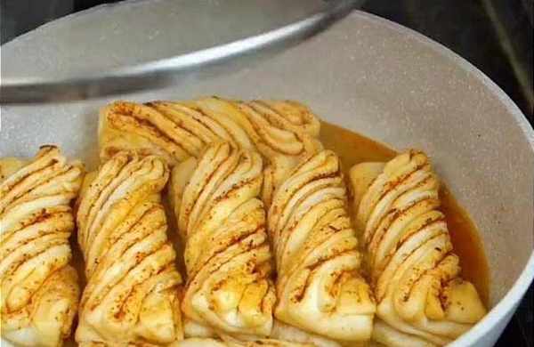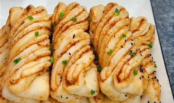 这道烧烤味花卷就做好了,底部焦香,里面特别的松软,层次也多。